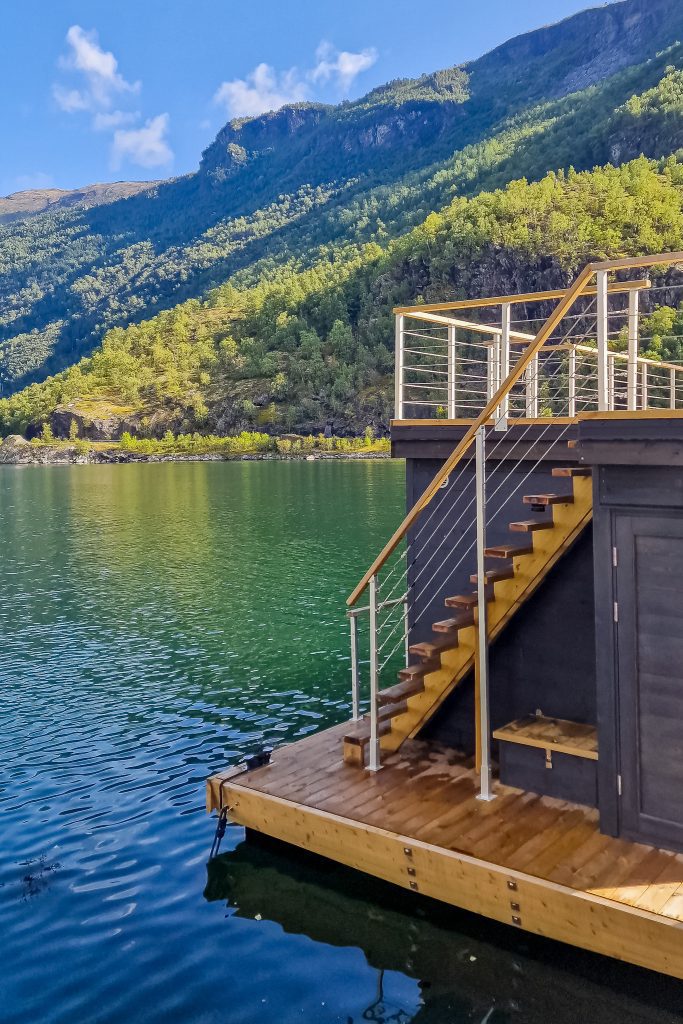 You can also leave the Flåm harbor on a fjord cruise, all powered by electric ferries. The dramatic fjord scenery around here is otherworldly! Also in Flåm is one of my favorite floating saunas in Norway. Definitely worth checking out if you need a little relaxation!